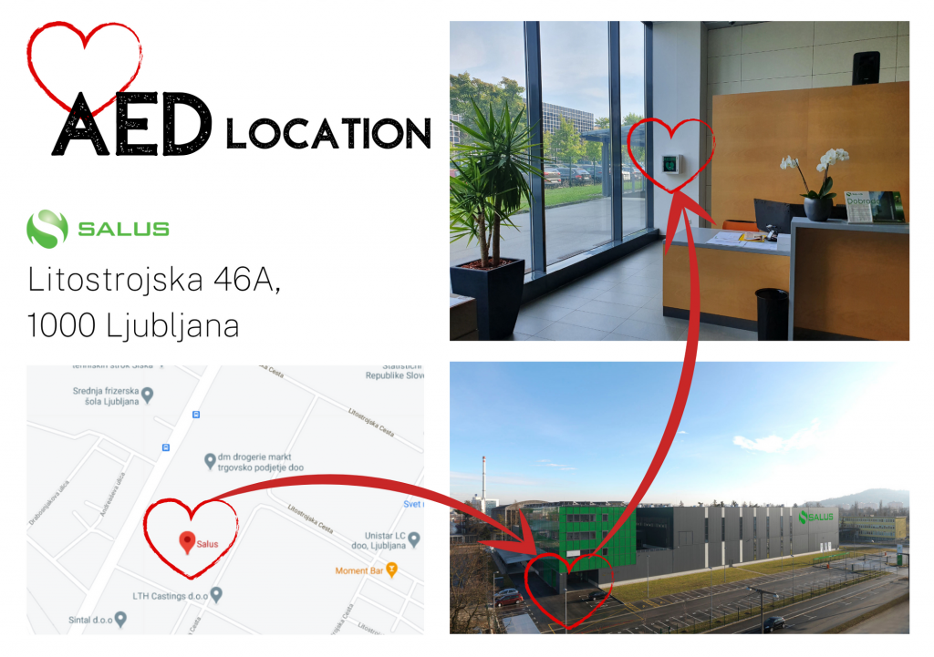 As an example of this we have installed automated external defibrillator (AEDs) in our premises in Litostrojska cesta, Ljubljana. Onsite AEDs save precious treatment time, and can improve survival odds because they can be used before emergency medical service personnel arrive. Placing AEDs in the workplace, along with providing a proper management system and training for employees on how to use the devices, can mean the difference between life and death. Of the sudden cardiac arrest deaths that occur each year, more than 95 percent of the victims die before they reach the hospital. When care is provided within five to seven minutes, including early treatment with an AED, survival rates can improve dramatically.